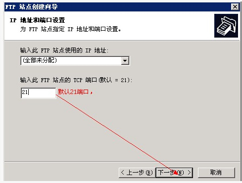 把FTP和對應的站點IP關聯起來,默認的FTP服務占用端口 21