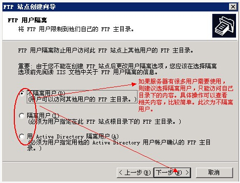 3、配置FTP,這里的配置主要是配置FTP目錄訪問的權限限制。