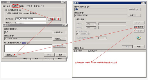 郵件選中新建的FTP名稱,選擇屬性,進入屬性配置頁面,切換到”安全賬戶”標簽頁。按照圖例選擇你新建的FTP用戶。最后記住一定要將“允許匿名鏈接”這個復選框去掉,然后點擊確定即可。