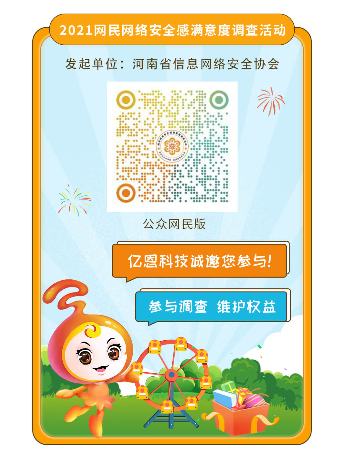 河南億恩科技股份有限公司等企事業單位支持,采取線上問卷調查方式開展,網民可在活動開展期間通過參與答卷,寫下上網用網過程中的感受、評價、建議及意見。